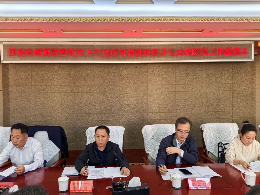 2024年10月17日至18日,国家疾控局卫生免疫司环境与地方病处冀永才处长、中国疾控中心寄生虫病所李石柱所长一行赴青海省海晏县、青海大学附属医院调研包虫病防治工作。调研组一行前往海晏县人民政府听取海晏县包虫病防控工作进展介绍。赴疾控中心、兽医站了解包虫病人群筛查、病人管理、健康科普和传染源控制等各项工作开展情况。实地走访包虫病患者,查看犬只管理情况,仔细询问病例服药和救治、犬只驱虫和犬粪无害化处理情况。赴青海大学附属医院对包虫病患者手术救治、科研以及组团帮扶等方面的工作进行深入考察。
