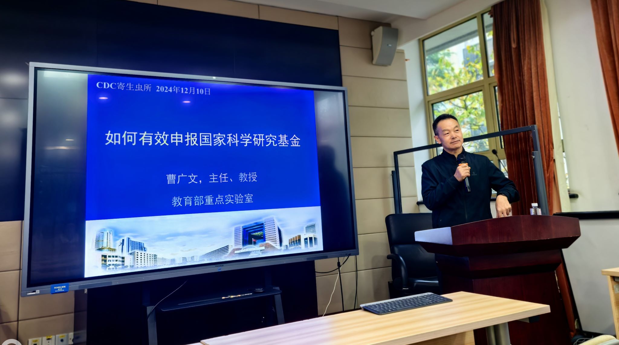 12月10日,寄生虫病所举办2025年度国家自然科学基金申报培训会,特邀海军军医大学曹广文教授主讲。曹教授作为国家杰出青年基金获得者及多项国家级荣誉得主,以其深厚的学术造诣和丰富的申报经验,为40余名科研人员带来了一场精彩的讲座。