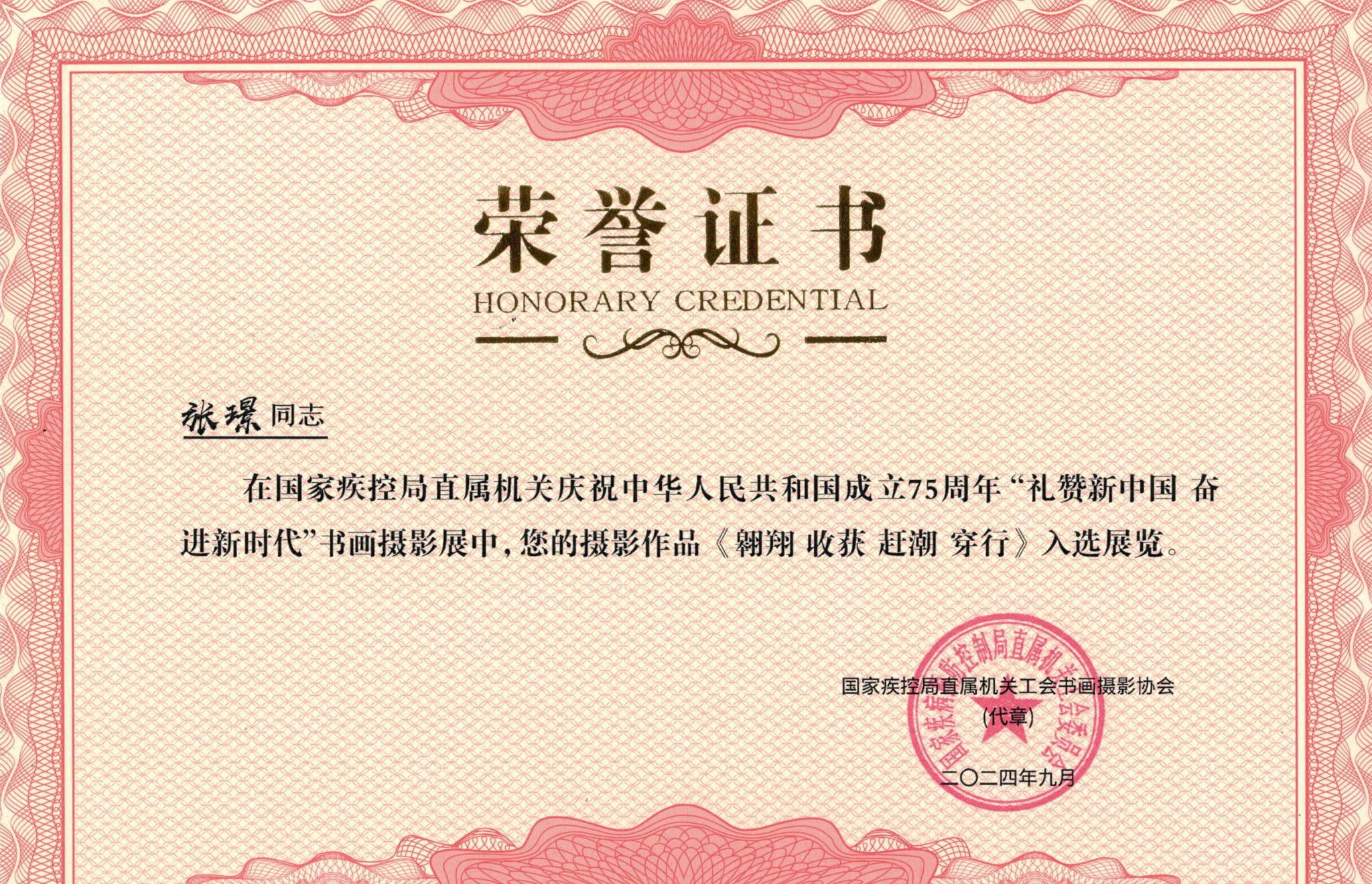 2024年是中华人民共和国成立75周年,新技术室响应寄生虫病所工会号召,积极组织职工参加上级工会举办的摄影大赛及活动,取得了优秀的成绩,并获入选国家疾控局书画摄影展览。