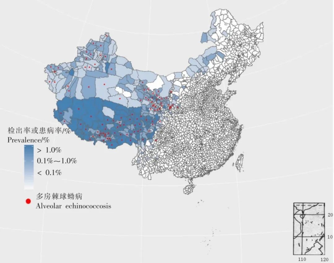 棘球蚴病(echinococcosis),在国内俗称包虫病,是一类由棘球绦虫(Echinococcus)的幼虫在人体或者中间宿主体内增殖所引起的人兽共患寄生虫病,广泛分布于除南极洲以外的其他各个大洲。棘球蚴病的发病隐匿期为数月到十年以上不等,治疗难度和费用巨大,每年可导致全球近2万例患者死亡,是我国重点防控的寄生虫病之一。