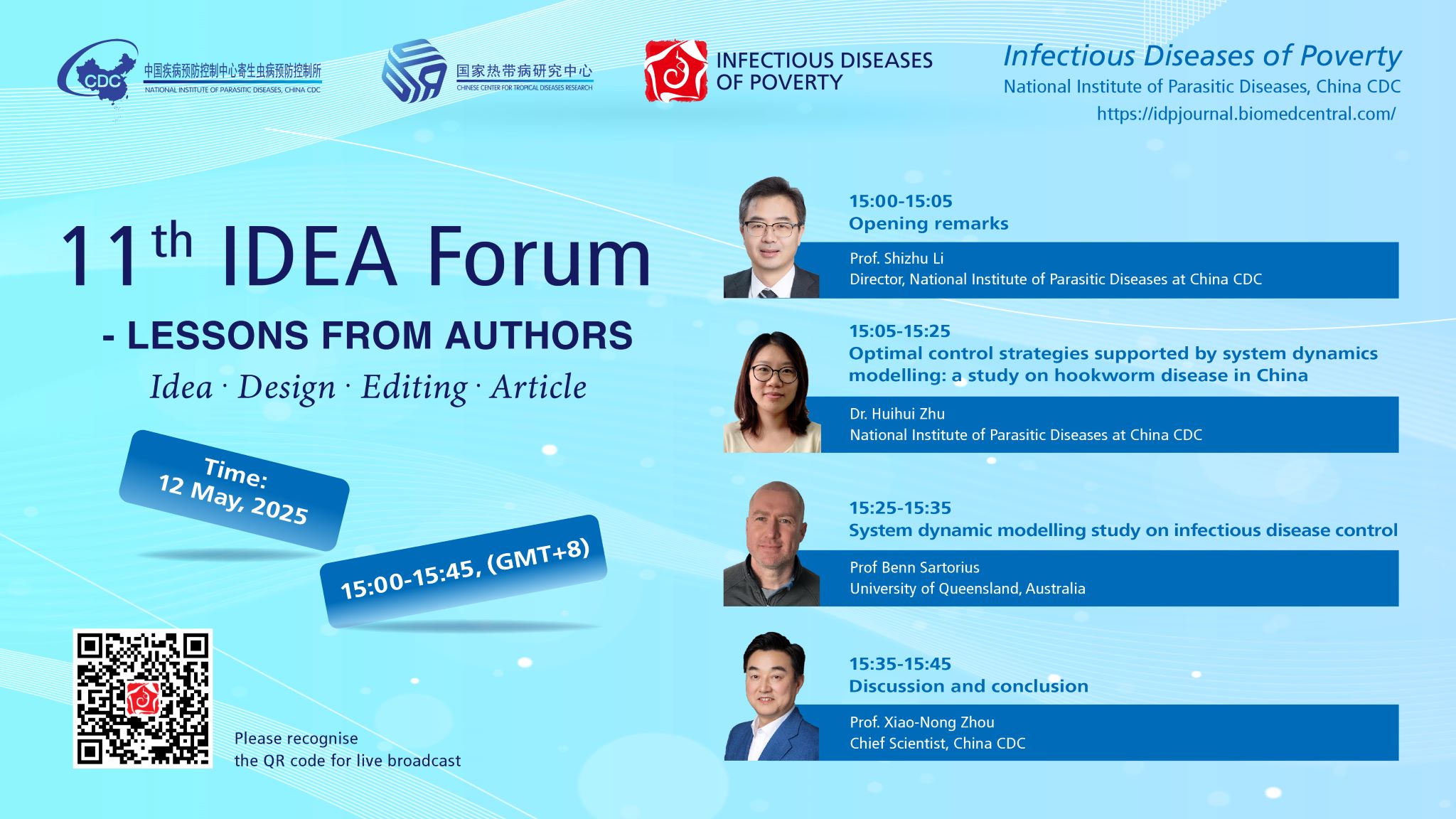 2025年5月12日第11期IDEA Forum思维论坛·作者分享论坛在上海成功举办。本次论坛由taptap的下载官网taptap国际服怎么正常使用(国家热带病研究中心)(以下简称中国疾控中心寄生虫病所)首席专家、Infectious Diseases of Poverty主编周晓农研究员主持,聚焦系统动力学模型在传染病防控中的前沿研究,线上线下100余人次参与论坛或观看直播。