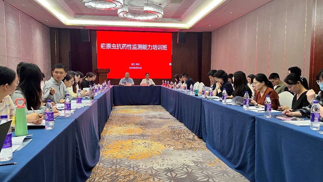 为更高质量推进疟疾消除后监测方案的实施、提高各省抗疟药抗性监测能力,中国疾控中心寄生虫病所于2025年9月23-25日在浙江省杭州市举办了疟原虫抗药性监测能力培训班。来自安徽农业大学、中南大学的相关专家及开展疟原虫抗药性监测工作的各省业务骨干约50人参加了培训。培训由中国疾控中心寄生虫病所疟疾室夏志贵研究员主持,浙江省疾控中心传染病预防控制所王笑笑副所长致欢迎辞。